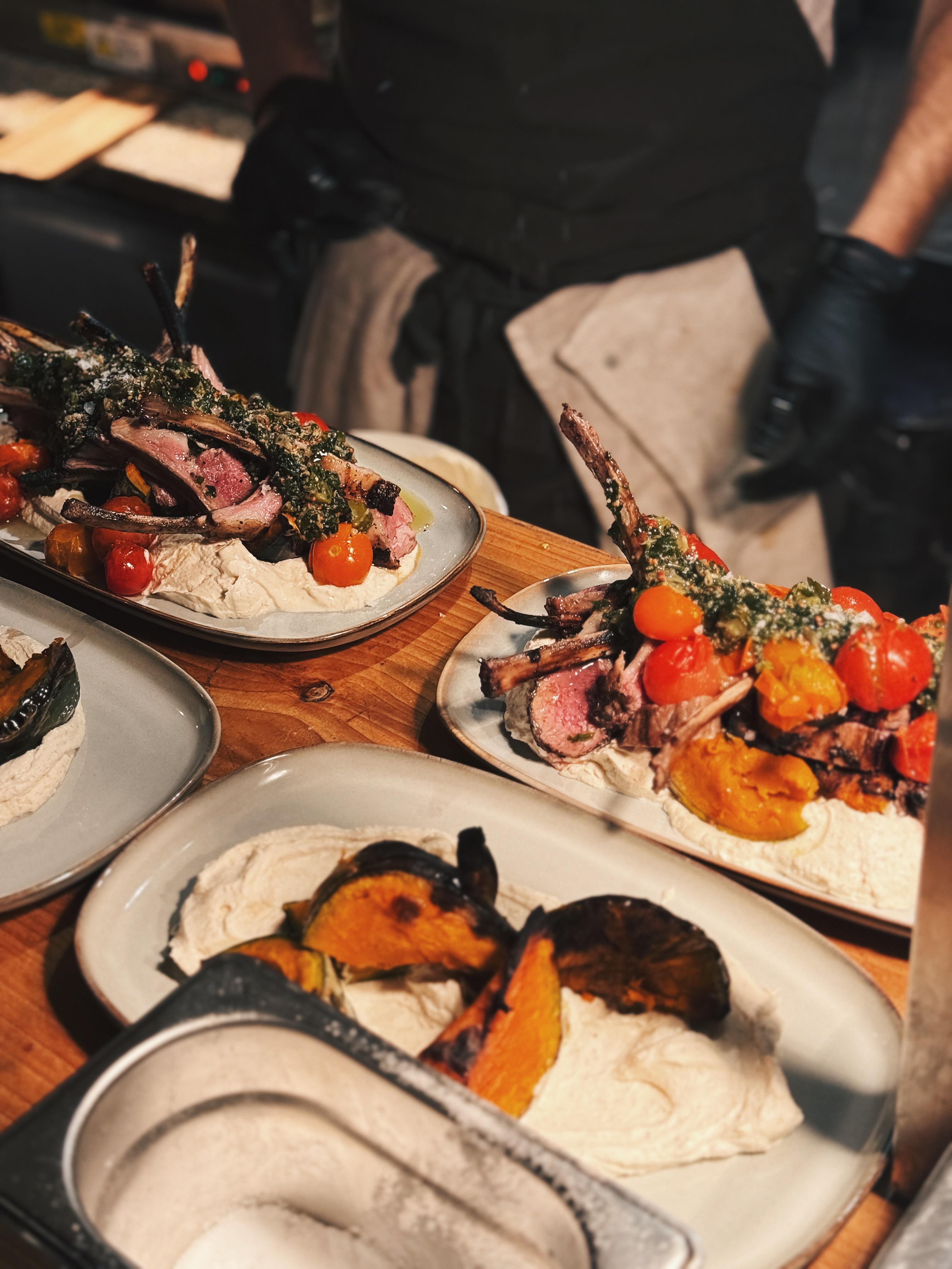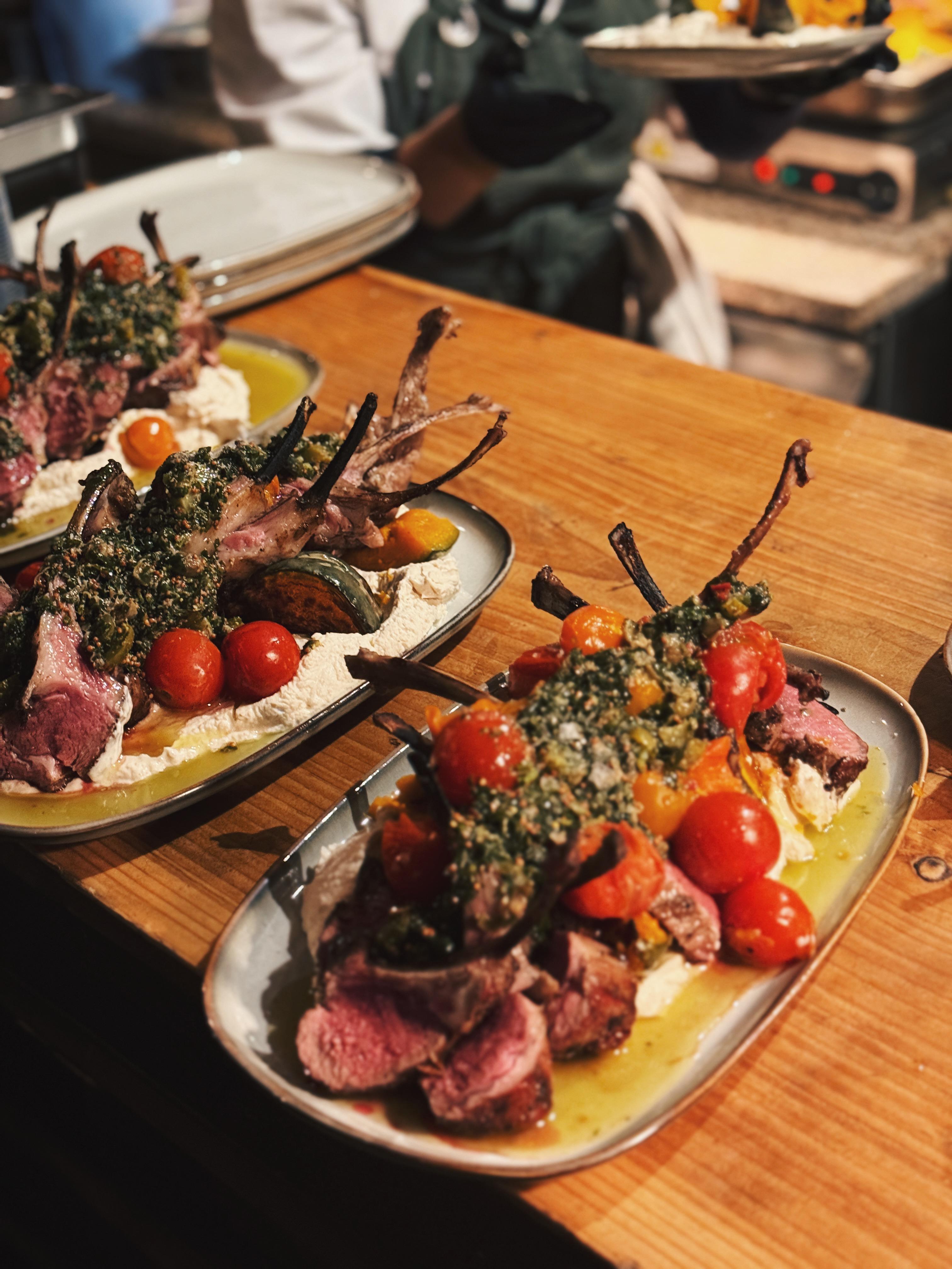 Our chefs cook over open flames in full view of your guests, turning each dish into both a meal and a moment. From sharing platters and vibrant salads to wood-fired main courses, everything is crafted with care and integrity.